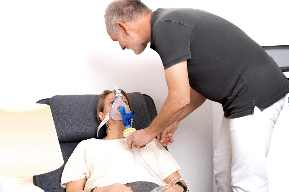 Während Sie sich bequem auf einer Liege entspannen können, atmen Sie über eine angenehm zu tragende Maske über 40 Minuten abwechselnd sauerstoffarme und sauerstoffreiche Luft ein. Das therapeutische Training findet zwischen 80% und 90% Sauerstoffsättigung statt. Das Mitovit-Gerät reguliert automatisch den für Sie optimalen Trainingsbereich und überprüft diesen kontinuierlich.